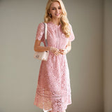 Découvrez la délicate alliance de la dentelle et du rose poudré dans cette robe midi éblouissante. Une pièce charmante qui célèbre la féminité avec grâce et élégance.