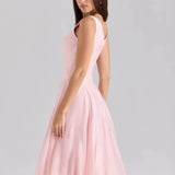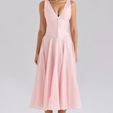 Succombez au charme raffiné de cette robe midi rose poudré, idéale pour les cocktails, mariages ou dîners élégants. Sa coupe cintrée met en valeur la taille tandis que le décolleté plongeant apporte une touche sensuelle et sophistiquée.