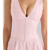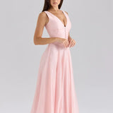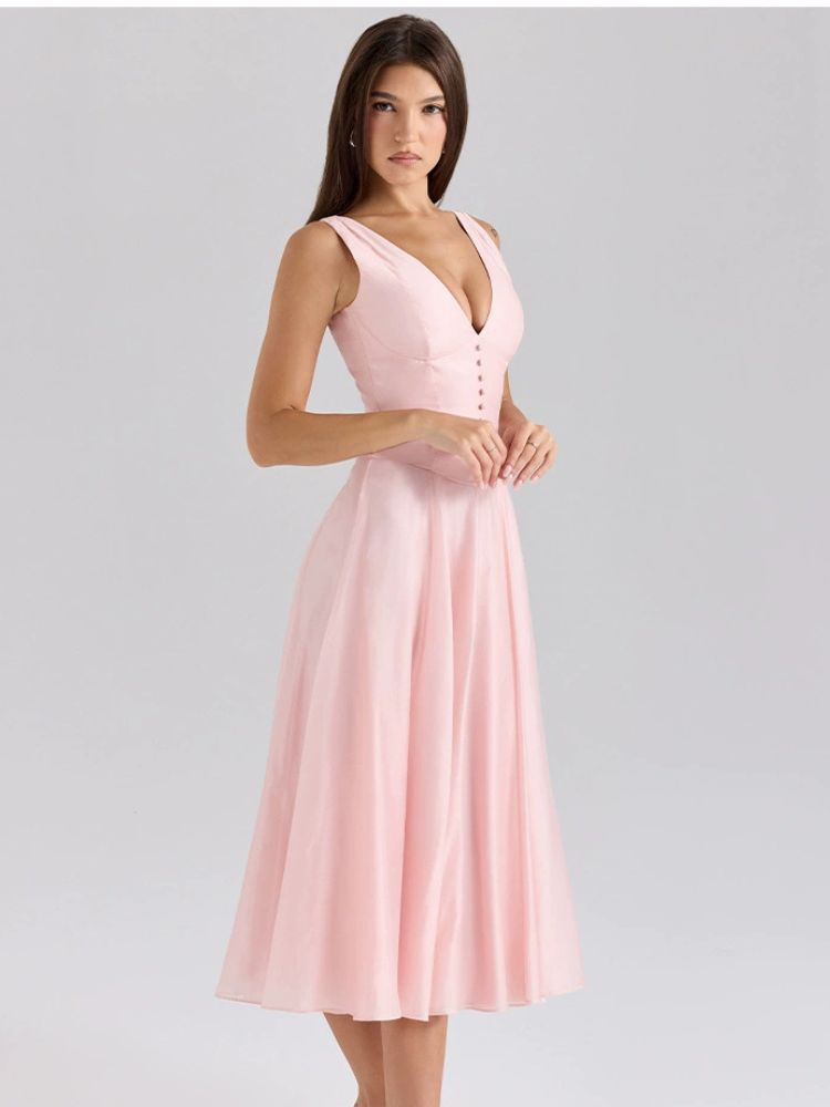 L'élégance incarnée : Robe rose poudré à décolleté plongeant