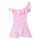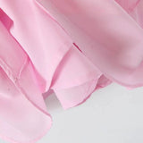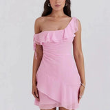 Élégante, féminine et résolument moderne : cette robe cocktail rose poudré est faite pour attirer les regards sans en faire trop. Son design asymétrique et son volant délicat apportent ce petit “wow” qui transforme une tenue simple en vraie pièce de soirée.