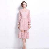 Robe cocktail rose poudré dentelle